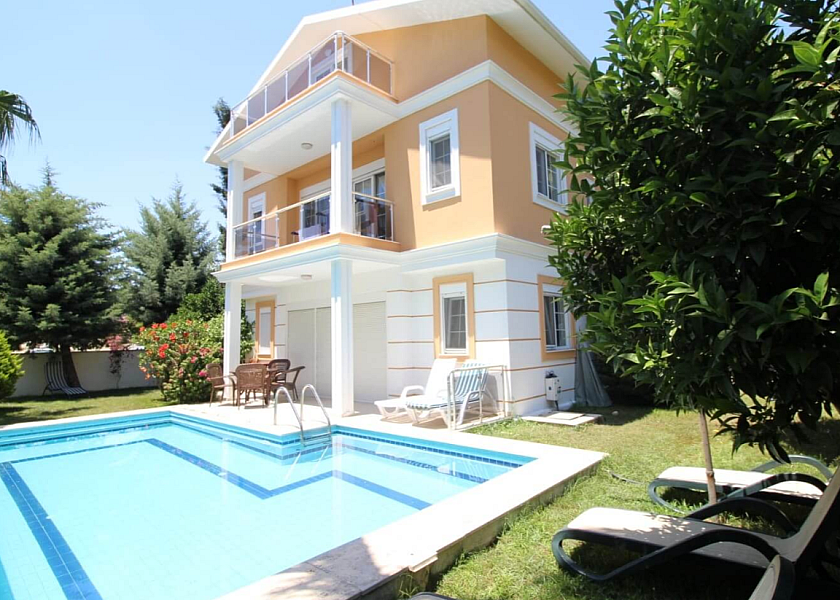 Akdeniz'in muhteşem tatil beldesi olan Belek merkeze sadece 5 dakikalık sürüş mesafesinde bulunan Kadriye bölgesindedir. Oldukça modern ve zevkli bir şekilde dekore edilen Villa misafirlerimizin ihtiyacını karşılayacak, konforunu sağlayacak ve dinlendirici bir tatil geçirmelerine yardımcı olacak tüm donanıma sahiptir. Kadriye bölgesinde nezih bir site içinde yer alan villamızın şezlong ve şemsiyeler ile donatılmış kendine ait özel havuzu ve çok bakımlı bir bahçesi bulunmaktadır. Evin içinde kendine ait saunası bulunan 3 yatak odasına sahip villamızın tüm yatak odalarında ebeveyn banyo, wc ve klima vardır. Villamız salonda bulunan 1 kişilik yatma imkanı ile birlikte 7 kişi kapasitelidir ve kalabalık aileler için ideal bir seçenektir. Villa'nın bulunduğu site içerisinde özel havuzu dışında ortak kullanıma açık olimpik yüzme havuzu ve çocuk havuzu bulunmaktadır. Gördüğünüz fotoğraflar Belek'te kiralık Villa'nın birebir kendisine ait fotoğraflarıdır.